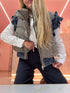 Bomberino caldissimo con inserti in jeans e righine in blu,