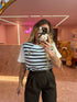 Maglia mezza manica con gilet a righe ricucita, in tg unica, lunghezza regolare e super morbida ♥