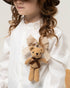 Fantastica camicia con colletto alla coreana, 100% cotone, volant e applicazione di teddy e spille a fiocco.